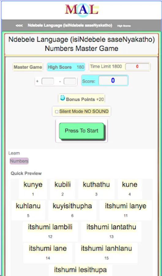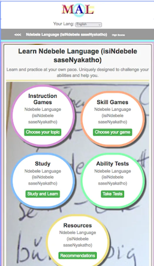 Play Ndebele Learning Games, Study and Learn with online Flash cards, Take Ndebele Tests