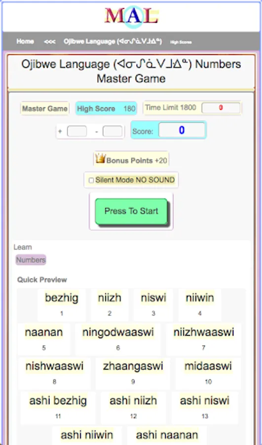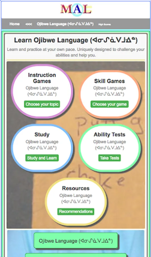 Play Ojibwe Learning Games, Study and Learn with online Flash cards, Take Ojibwe Tests