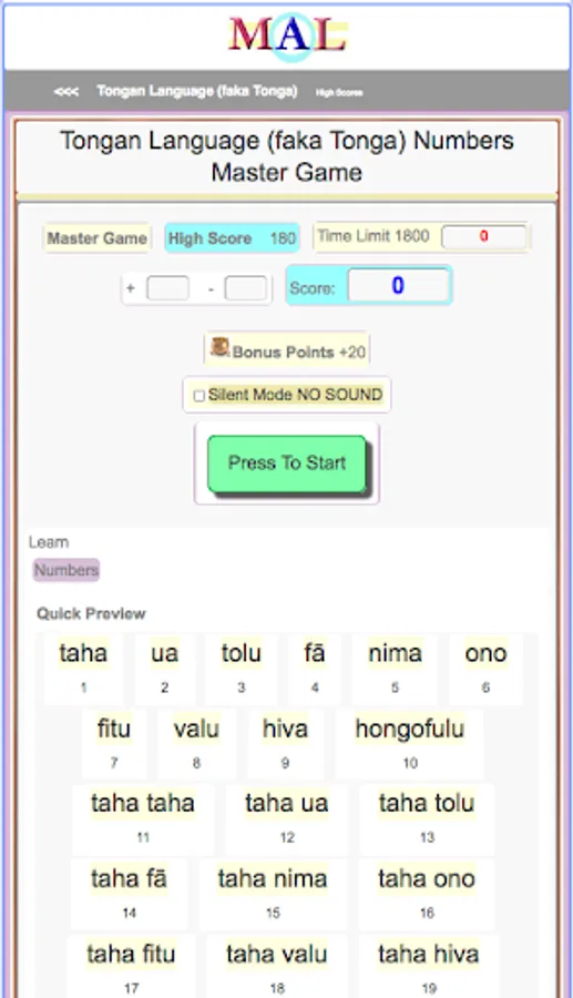 Play Tongan Learning Games, Study and Learn with online Flash cards, Take Tongan Tests