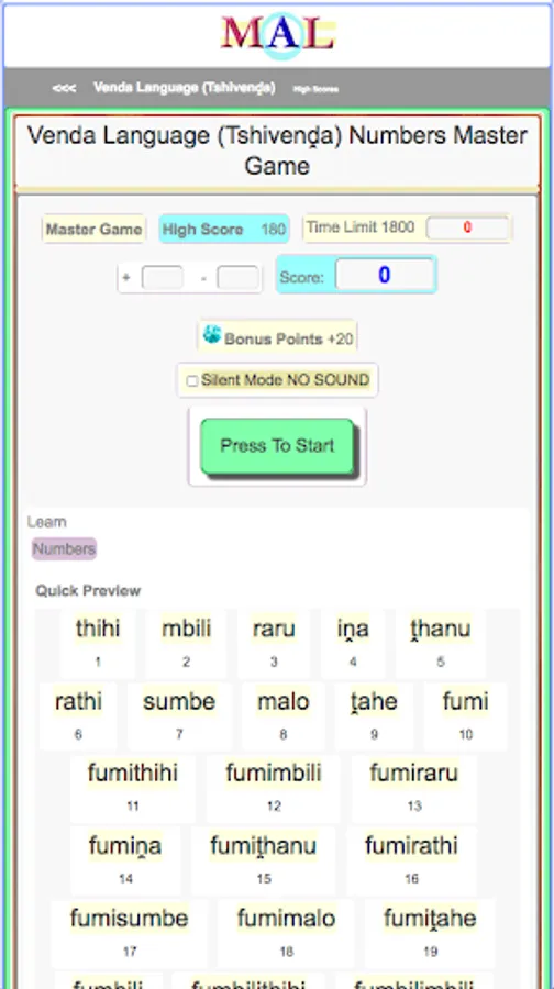 Play Venda Learning Games, Study and Learn with online Flash cards, Take Venda Tests