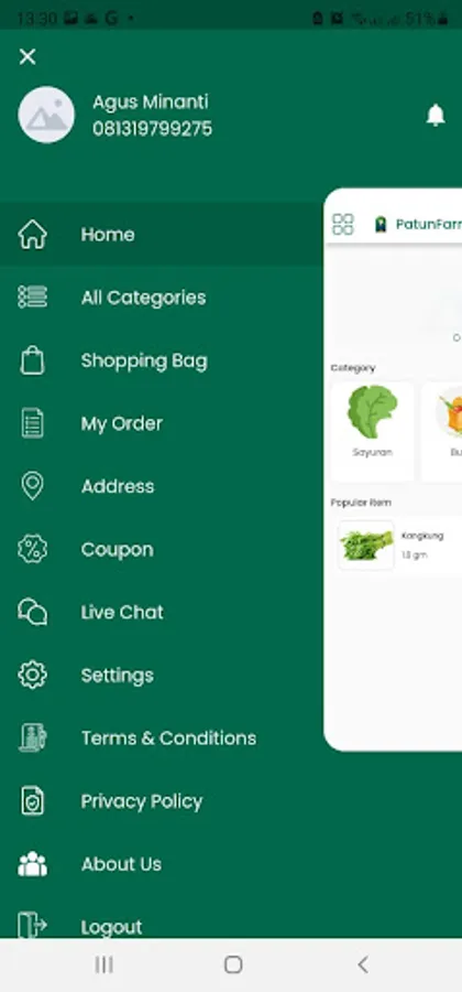 Aplikasi pesanan sayuran online pesan hari ini antar esok hari
