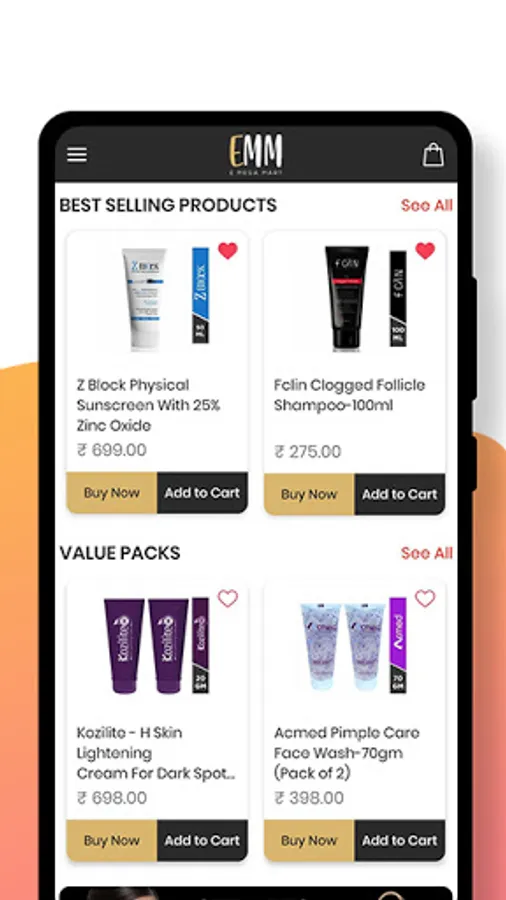 We deliver a great shopping experience through E Mega Mart India. Whether is it adding new skincare products to your cart or reordering your favorite sunscreen, we always provide a satisfactory shopping experience to each customer.