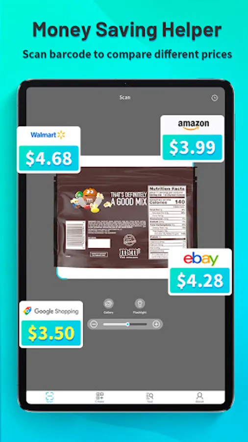 Simple Barcode reader -- The application supports scanning product barcodes or ISBN to get more information and compare different prices by visiting some popular e-commerce platforms online. Scan Assistant can also be a price scanner for scanning coupon code to receive discounts and save some money💰.