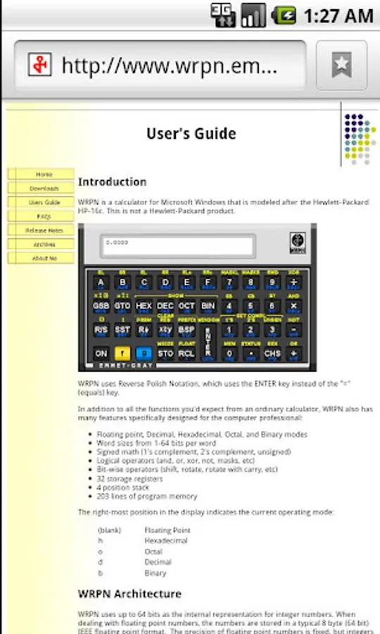 In addition to all the functions you'd expect from an ordinary calculator, WRPN 16c also has many features specifically designed for the computer professional:
