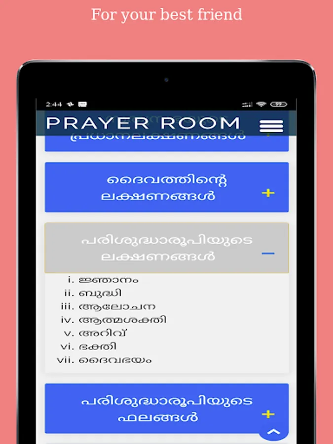 The prayer room is an application desingened for everyone to pray. Find time to pray everyday. May we please the messiah, his father, and the holy spirit through prayer, fasting, and repetance.
