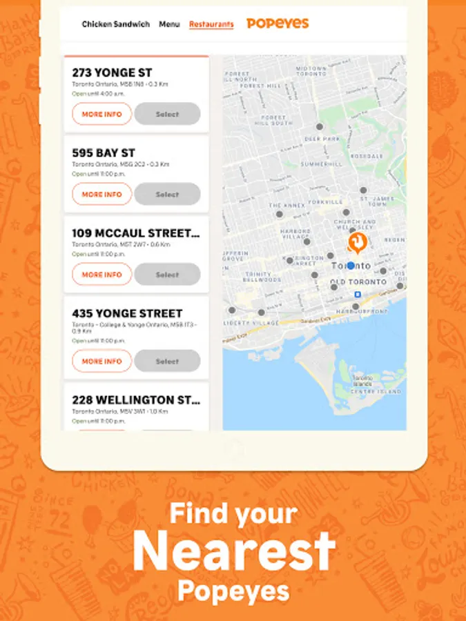 Restaurant Locator: Use the app to find the Popeyes® nearest you.