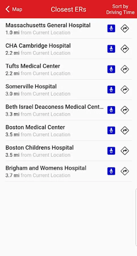 findERnow uses the iPhone’s/Android’s GPS to quickly locate ERs anywhere in the U.S. You can select the closest ER or another nearby ER in a map or list format and can locate the closest ERs by driving time or by distance.