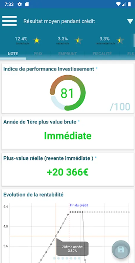 - Instantly view the relevance of your investment thanks to our performance index (/ 100)