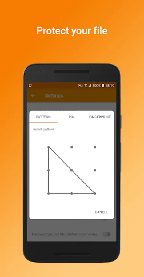 - Protect your files with : Pattern, PIN, Fingerprint.
