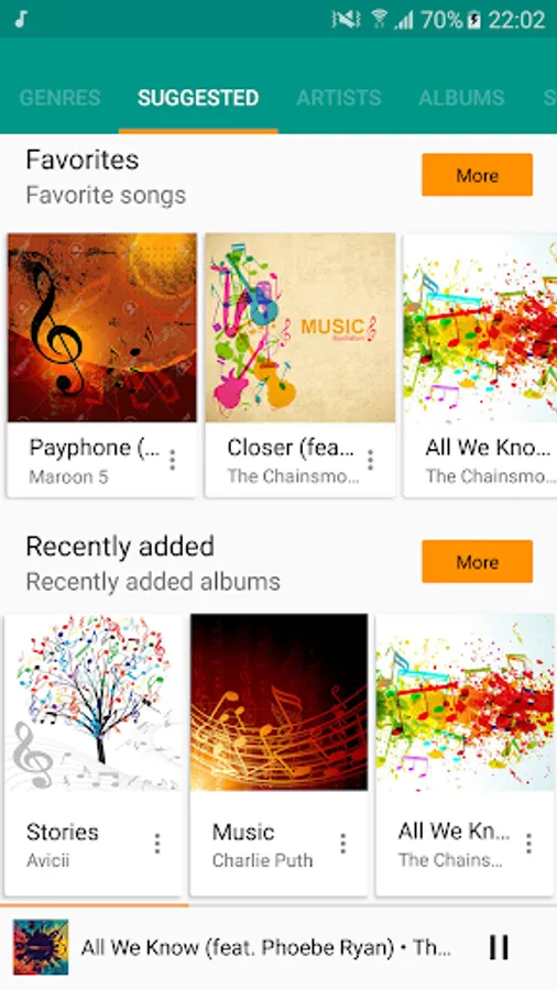 - Notification status: show album artwork, title and artist, play/pause, previous/next and stop CONTROLS in notification status.