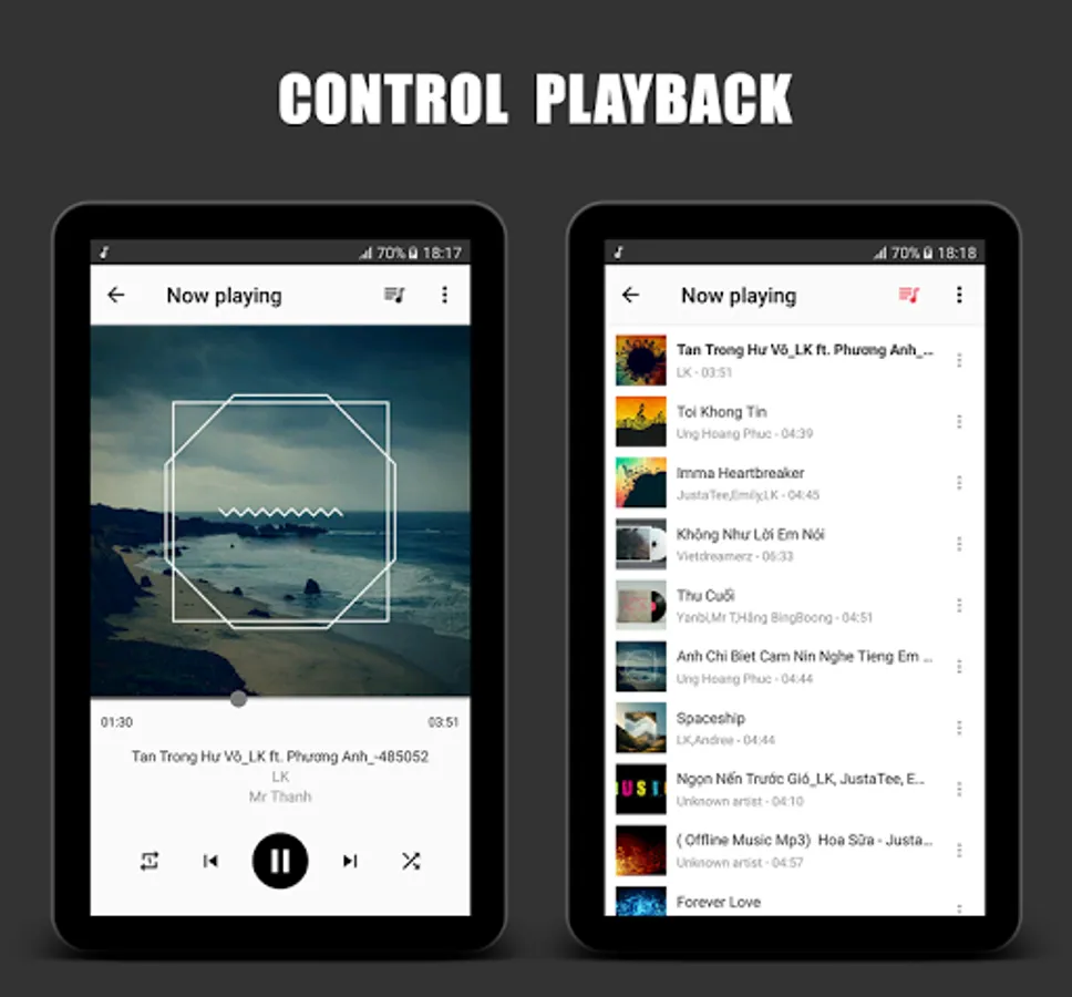 MP3 Music Player is a free and powerful music player. It automatically detects all the local music and audio files in your phone, helps you listen to them easily.