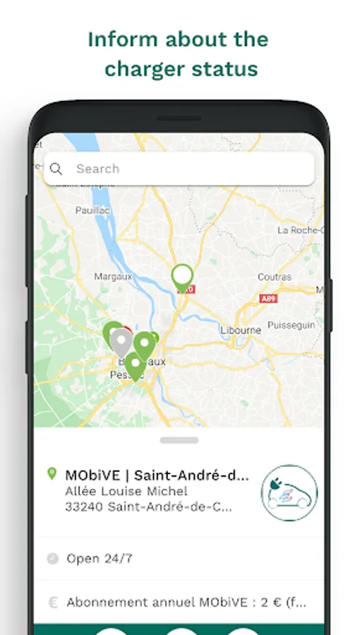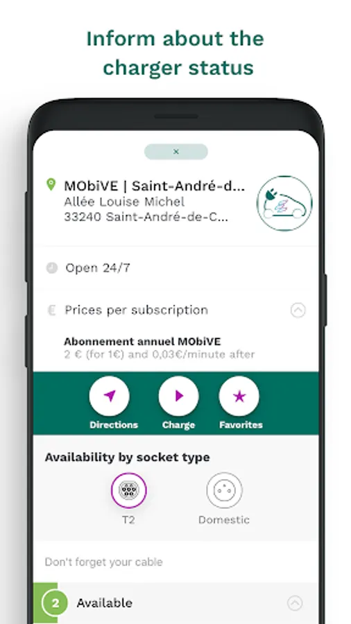 - Get real-time information (availability, charging speed, plug types, rates...)