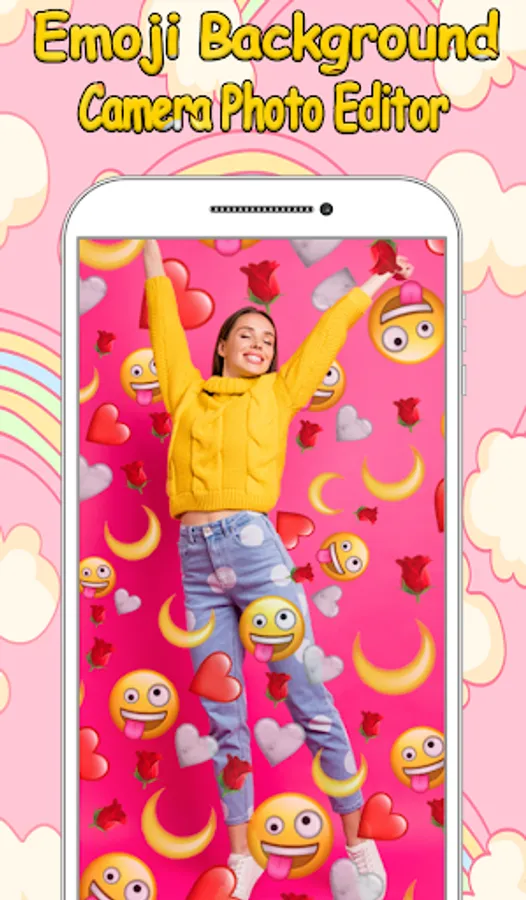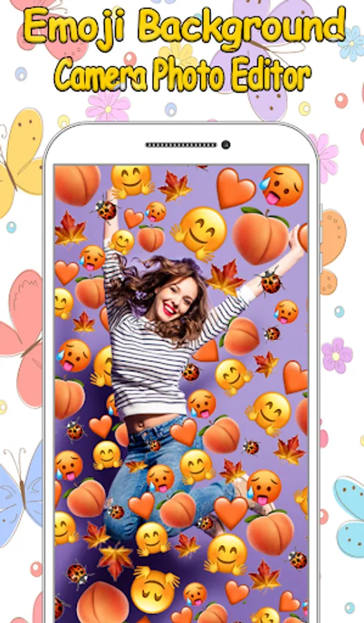 emoji background stickers are simple to add: Take a pic or choose one from gallery, then select your favorite emoji background, place them in your photo, erase or transparent emoji background until you like, save your photo and share it on social network.