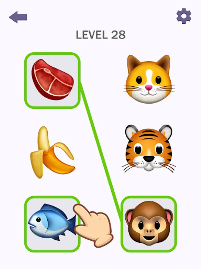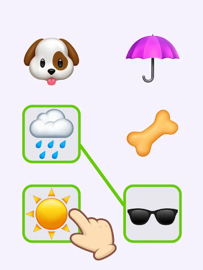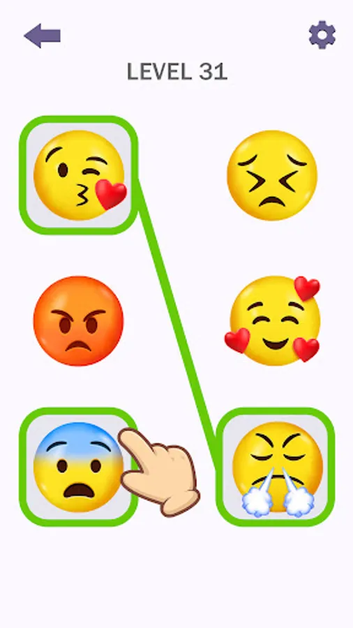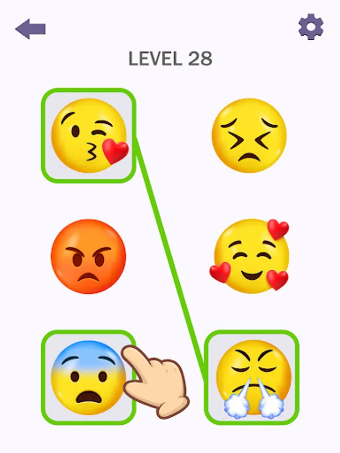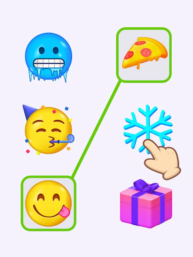 Draw the line to connect pairs of emotions to complete the quiz in match emoji puzzle game. Connect matching pairs in multiple elements from different rows and match the icon in riddle emoji match game. Accept the emoji match puzzle challenge to connect emoji IQ to complete the cute emoji challenge in fun emoji games. Select the puzzle emoji quiz and match pairs link to become master of block puzzle and guess puzzle in this funny puzzle game.