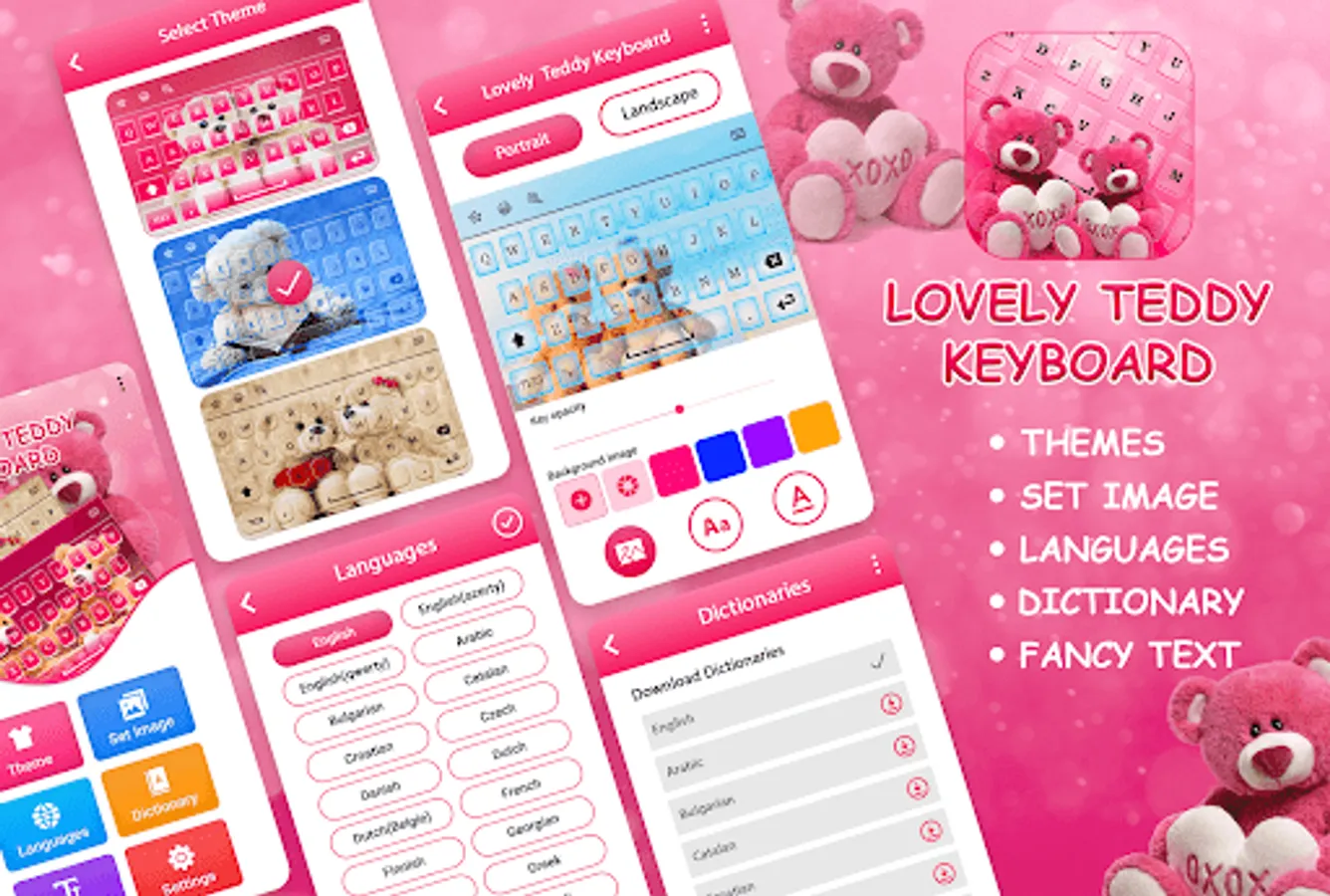 Teddy Bear Couple Keyboard Theme. Lovely Teddy Keyboard is a smart & customized keyboard for android. It comes with the stylish keyboard background, fonts,emojis and stickers! Download and Apply this lovely teddy bear theme right now !
