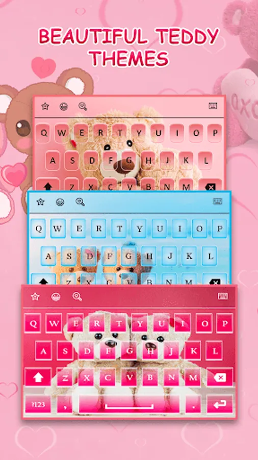 #1. pretty Lovely Teddy keyboard background with GIF & Stickers, text, now available on Android! Millions of users ❤❤❤❤❤ all over the globe. Lovely Teddy Keyboard Theme gives you the best keyboard background, fonts and emojis for free!