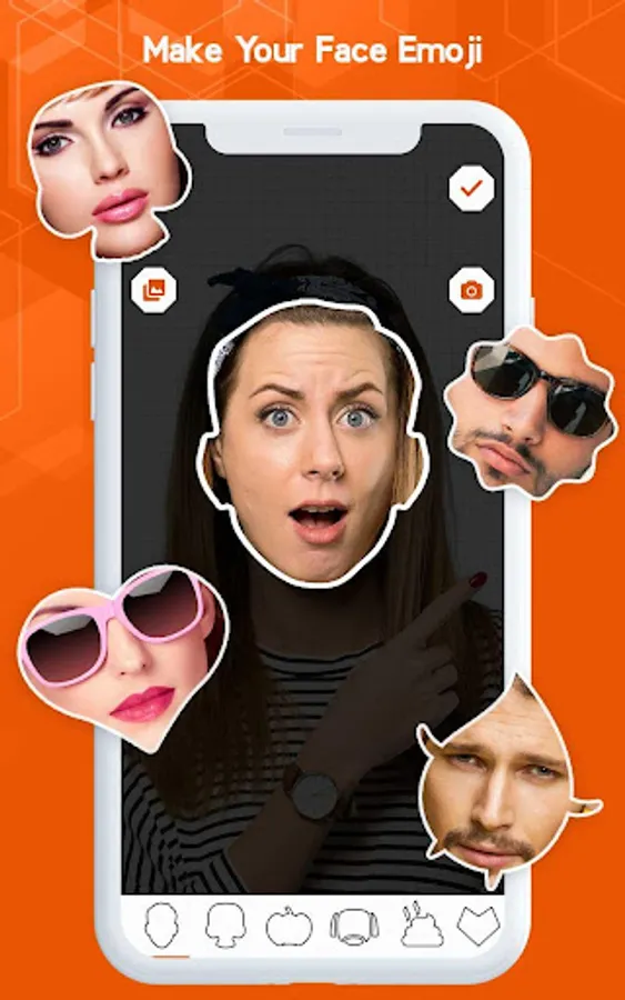 You can create an unlimited collection of personalized emojis. Custom emoji maker lets you make your customized chat emoticons and smiley. Animated emoji supported for phones enables you to use a new kind of emojis called animated emojis. The new emoji will allow you to send and receive animated emojis, launched on a new phone. Discover one of the most exciting and fun ways to express your emotions by creating custom emoji and sharing it with all. Share your creative thoughts in emoji stickers when you chat with friends or anyone else. The sticker maker with stickers for text messages to face along with Emoji Keyboard, Emoji Maker, Emoji Creator, and Emoji Designer apps.