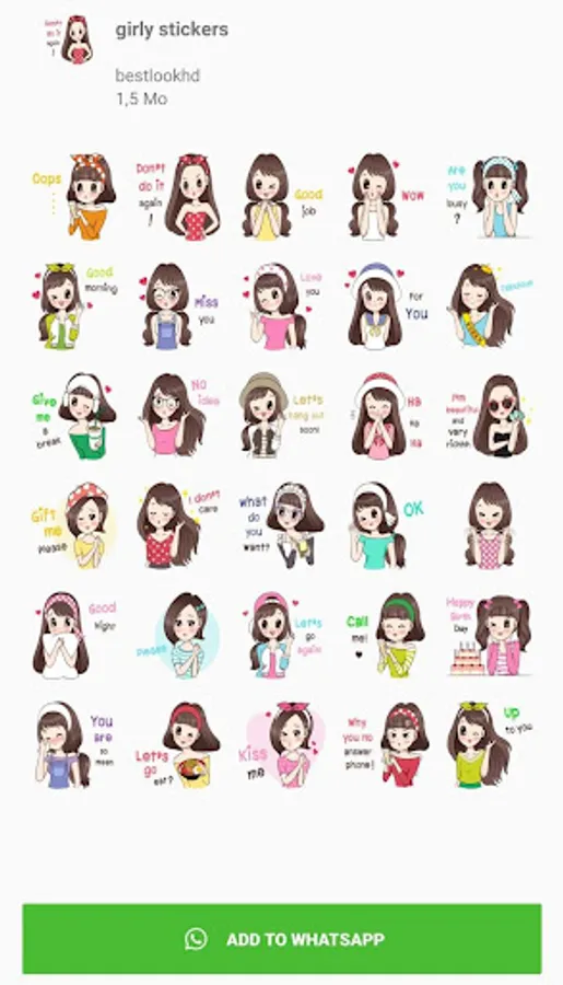 Enjoy this free girly sticker packs with hundreds of cute stickers! send beautiful flowers, or stickers of hearts, congratulate with the birthday and Send a romantic love emoji, or just good morning.