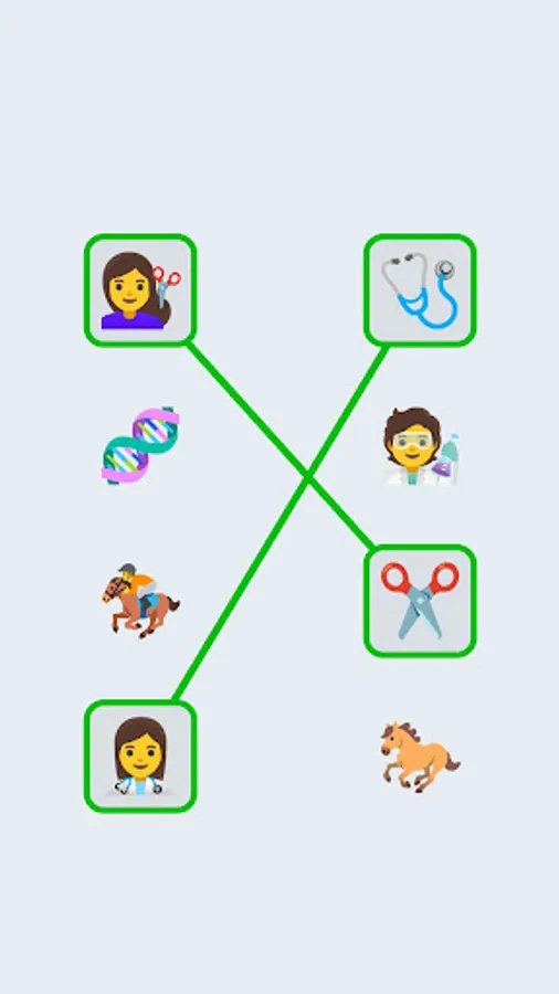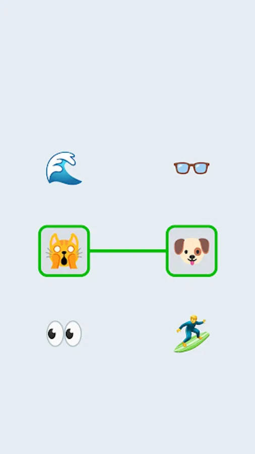 🎉This is a match-matching game that requires you to use your imagination to find the connection between two columns of emojis, connect them, and if you manage to find each pair and connect them correctly, you pass the level.