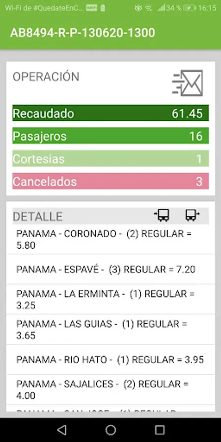 It's that simple ... You will be able to know the amount collected, number of passengers, the origin and destination by type of tickets from your mobile.
