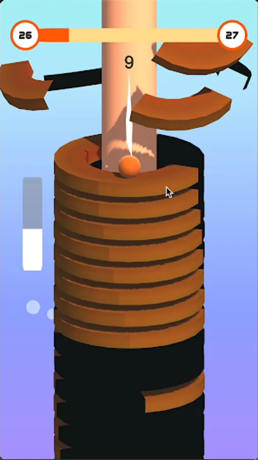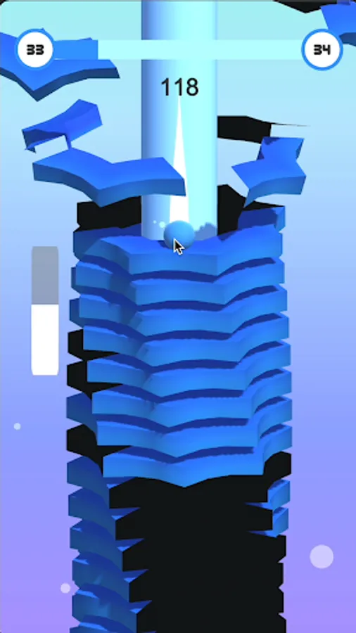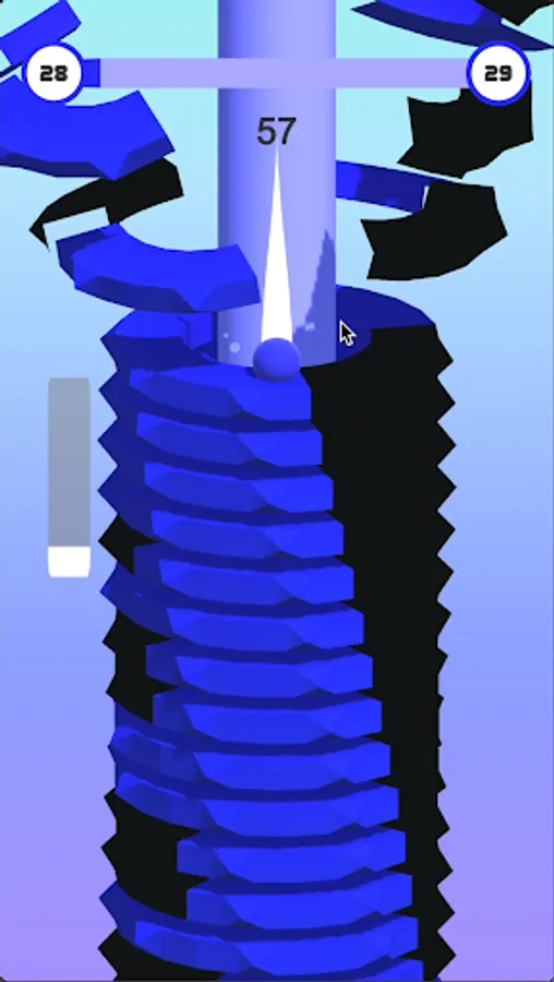 Your ball smashes like a brick through colorful platforms that block its descent, but if you hit a black one, it's all over! Your ball shatters to pieces and you have to start your fall all over again.