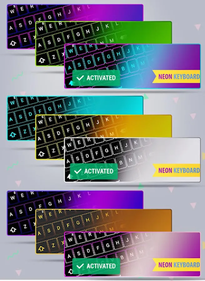 - Fancy neon keyboard theme like blue keyboard and lots of colorful neon theme plugIn like Neon Orange, Neon White, Neon Green, Neon Pink,Neon Matrix, Neon Purple..etc