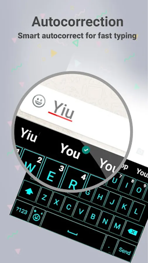 - It is an simple neon style theme keyboard that support to input emoji to share emotion in everywhere, you can see the beautiful simple style keyboard UI and input emoji very convenient.