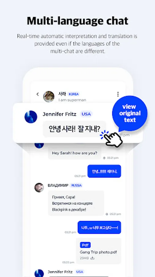In addition to 1:1 chatting, in 1: chatting with multiple people, even if there are users who speak different languages, it will be translated into their own language.