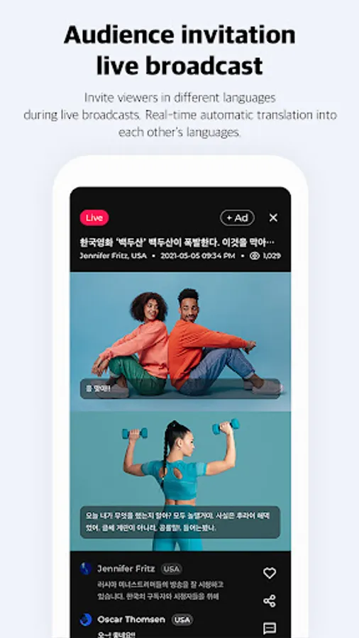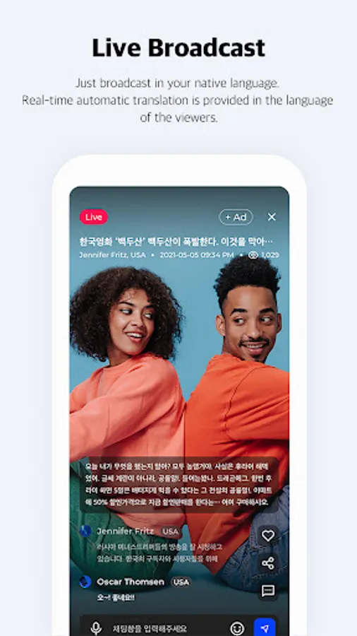 emoLive automatically translates the conversations you make during live broadcasts into each viewer's language.
