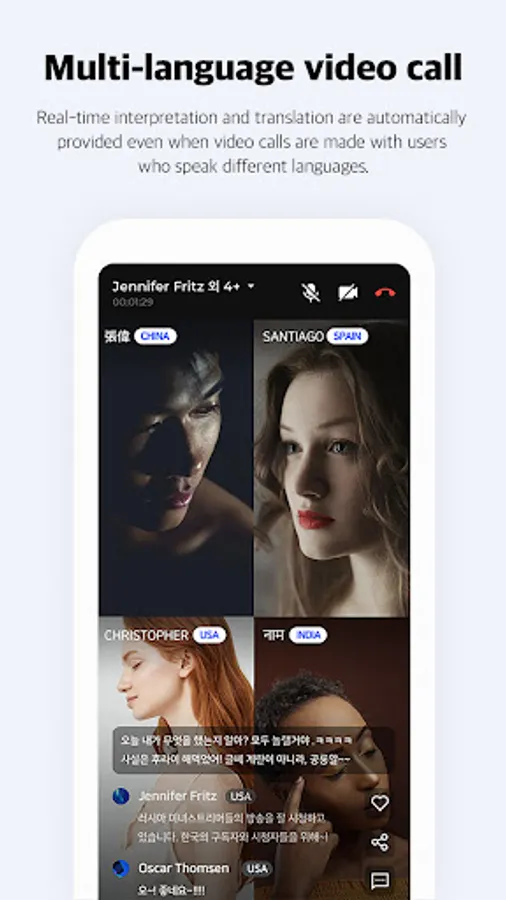 In addition to 1:1 video call, in 1:3 video call, even if there are users who speak various languages, it will be translated into their own language.