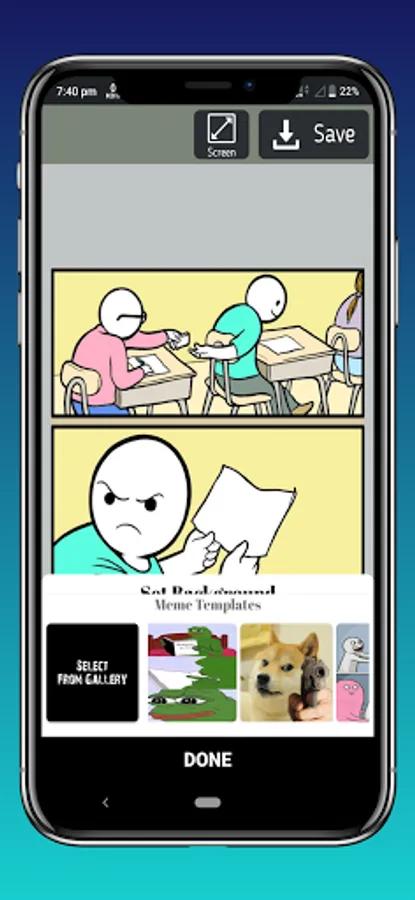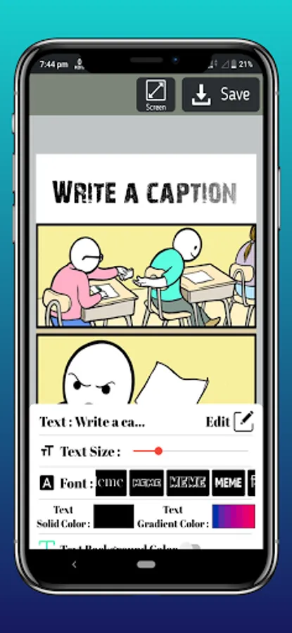 Make your own meme with this app. This app have a lots of meme templates and you can choose your photo from your Photo Gallery to be used as background . Meme Maker App is ready with customizing options such as meme templates, icons, text colors, text size, fonts.