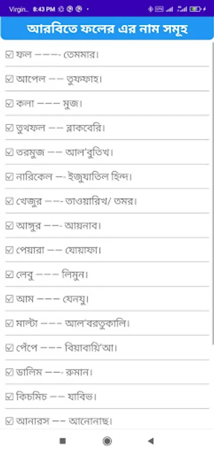 এই অ্যাপটি একটি সুবিধাজনক এবং সহজ উপায় হতে পারে আরবি ভাষা শিখতে। এটি ব্যবহারকারীদের জন্য অবদানকারী শিখন অভিজ্ঞতা উপহার করে এবং একটি স্বচ্ছ এবং সহজ ভাষায় বাণী প্রদান করে