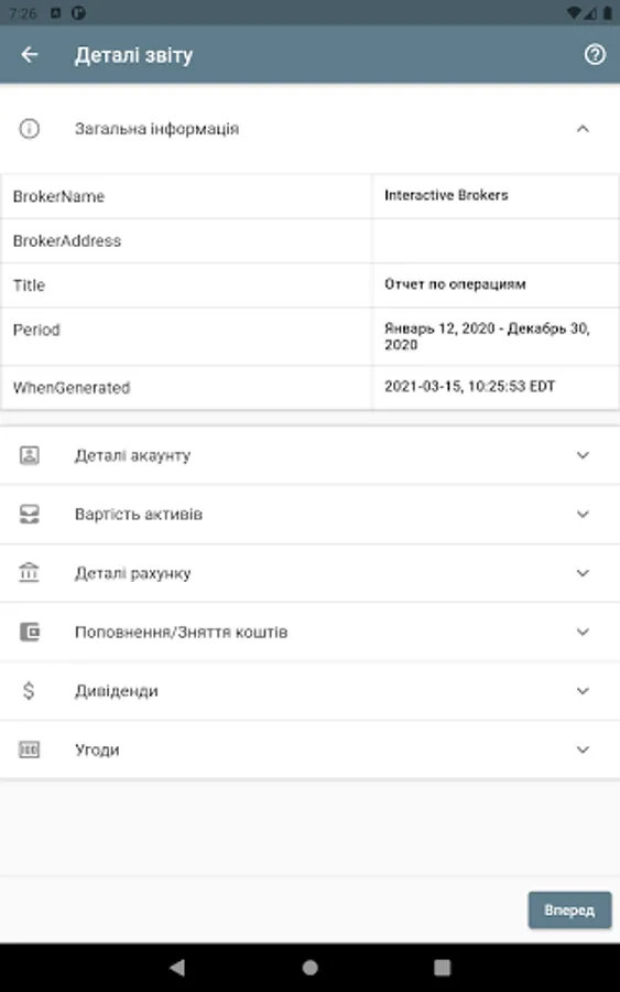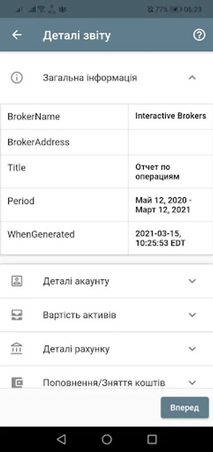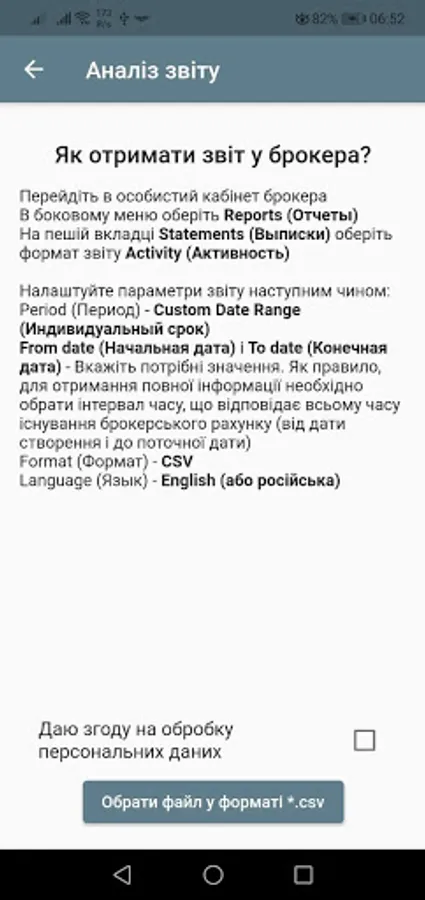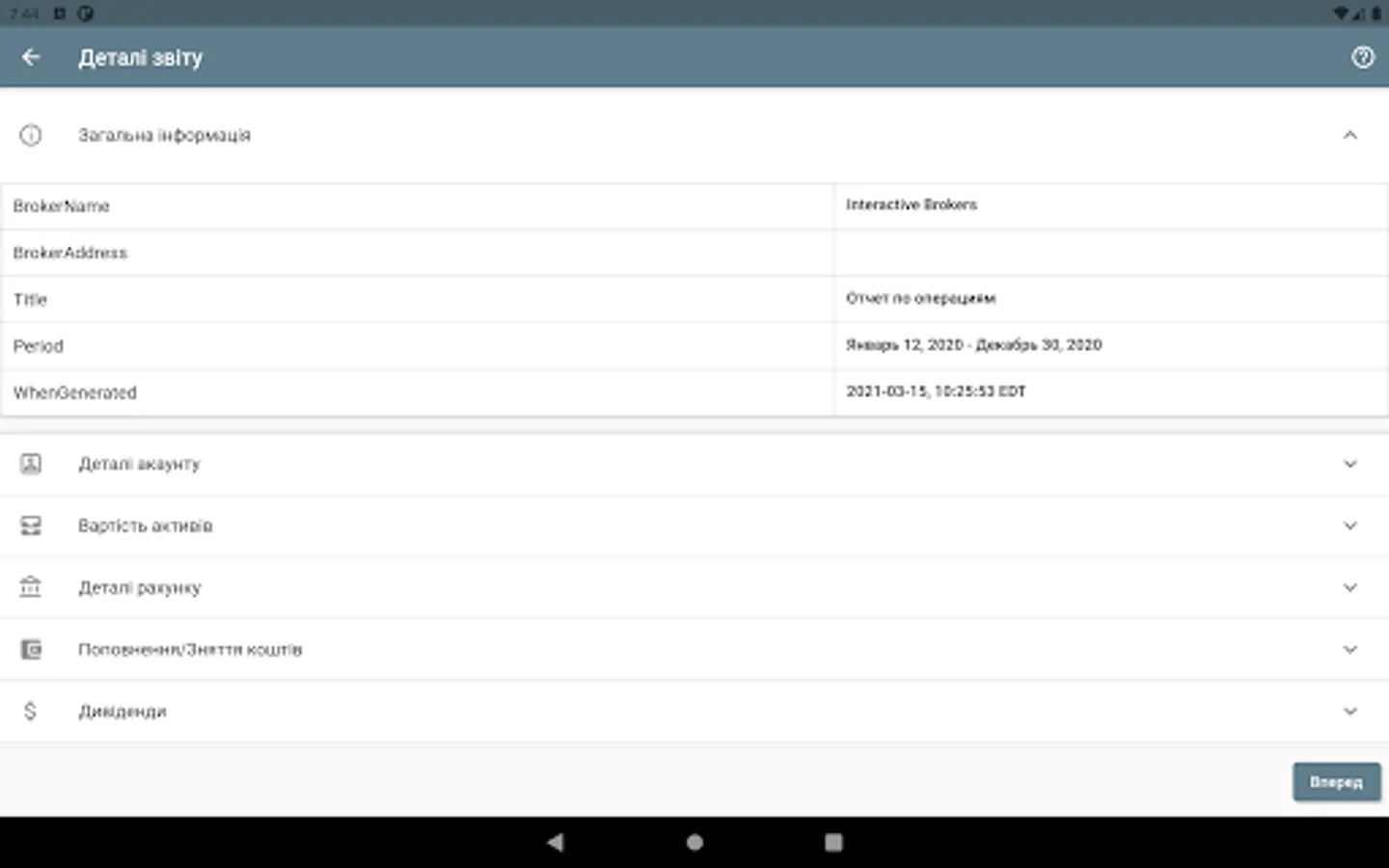 The app can already help you calculate taxes on securities transactions in Interactive Brokers (IBKR). Just upload the broker's transaction report to the app, select your country of residence, and the assistant will do the rest.