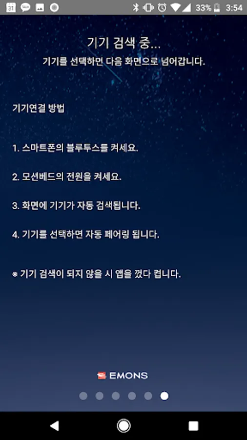 -모션베드와 블루투스 모듈의 전원을 확인 한 뒤 모바일 기기의 블루투스 기능을
