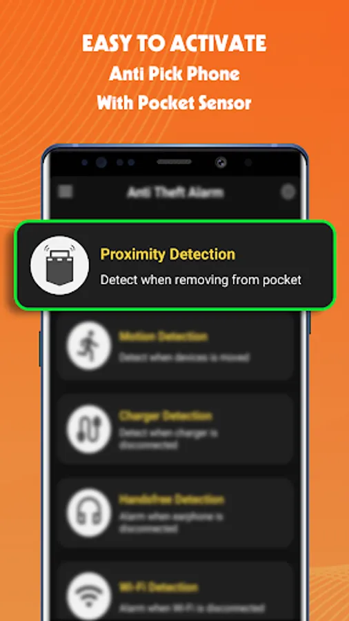 Proximity Detection: Anti theft alarm uses a special do not touch my phone pocket sensor to detect and inform you when your mobile phone is picked from the pocket by someone else. Don’t touch my phone alarm will ring loudly and keep your mobile phone secure if anyone removes it from your pocket when you are in some crowded areas.
