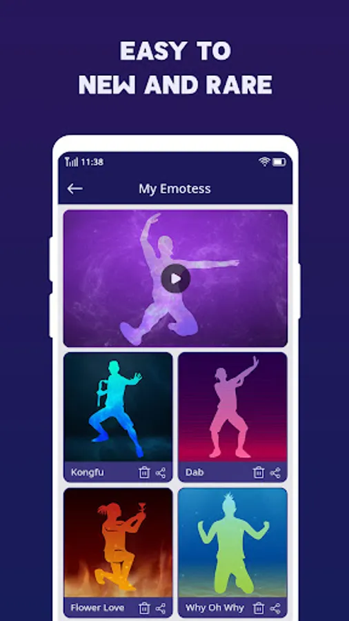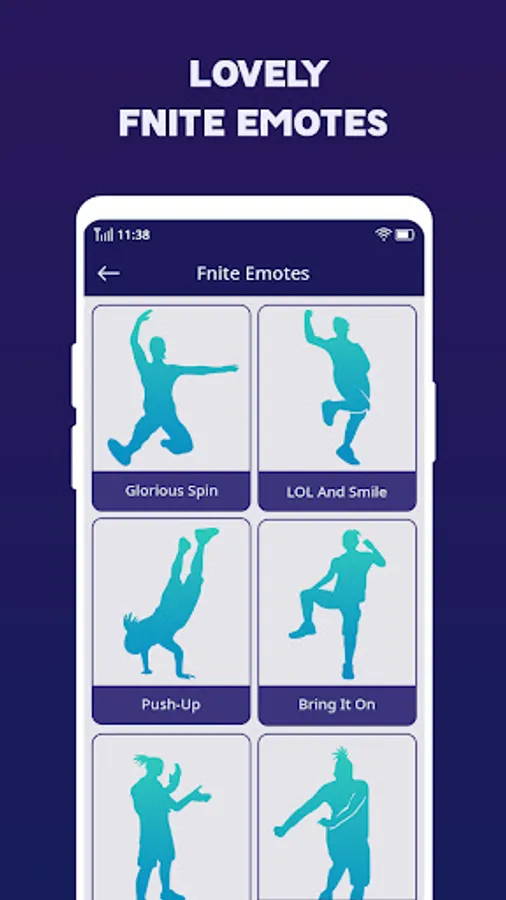 iMotes is very easy to use. We have created different categories with the main dances and emotes of battle royale. In each of them you can see all the dances and emotes of the category, the name of the dance and its main cover image so you can get an idea of what the dance is like.