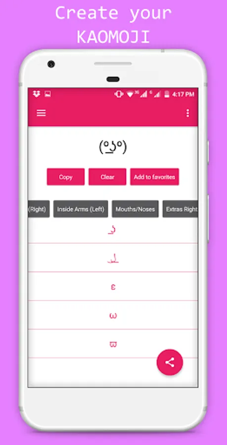 - the ability to add a Kaomoji to your favorites