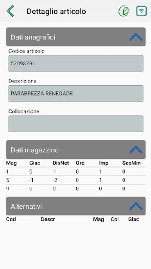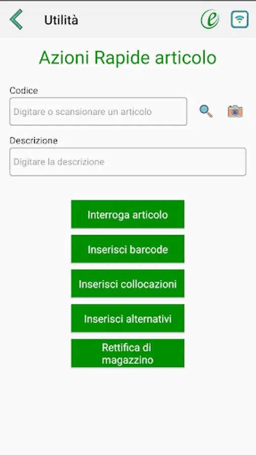 Utility: in the utility section it is possible to carry out article queries, barcode insertion, bin insertion, alternative insertion and inventory adjustment.
