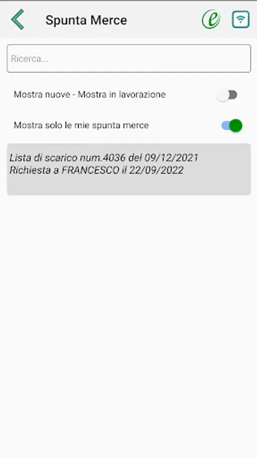 Goods preparation: allows you to check the goods present in a goods preparation document sent to the operator via the fixed location of the management system. The function does not generate a list to be imported, precisely because it already derives from an existing document, but updates the goods check table in eSolver.