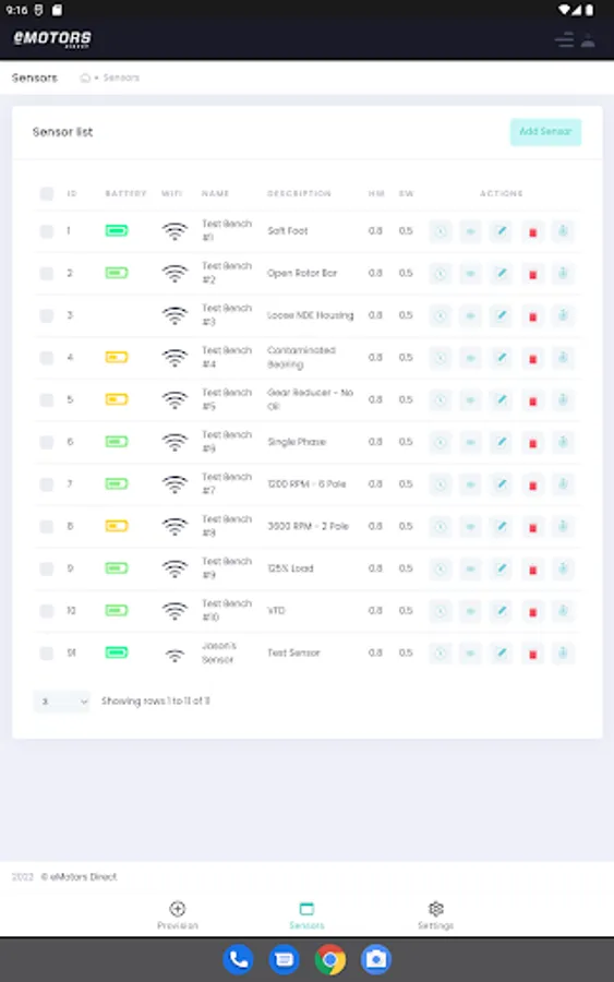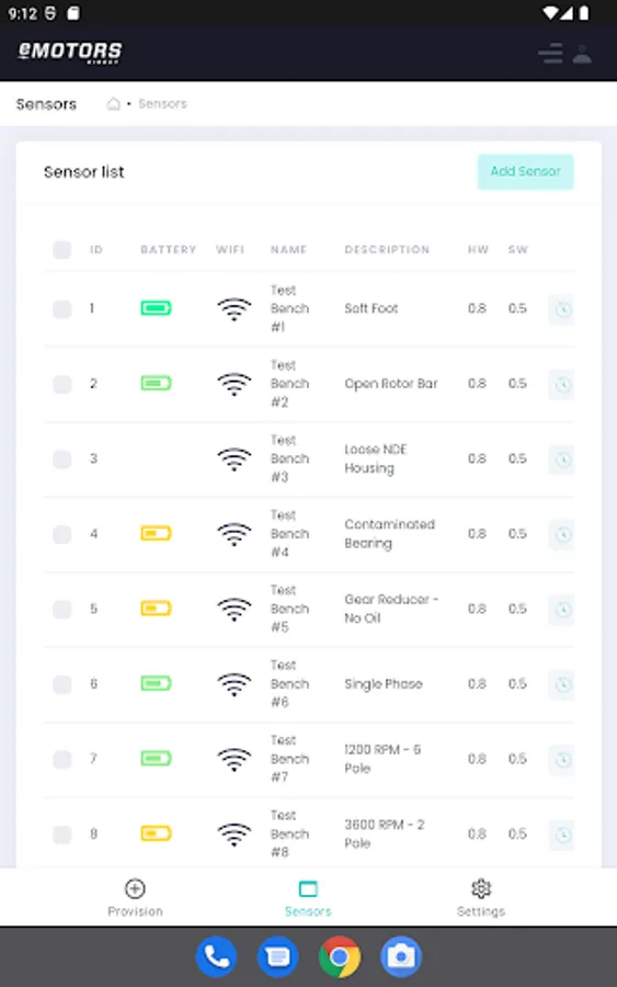 The eMotors Sensor allows you to monitor the health of your motors on demand from a computer or mobile phone with a free, online dashboard. Helping maintenance professionals complete their tasks in less time and with less effort.