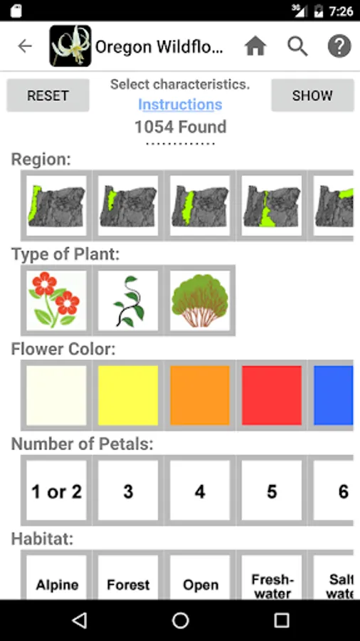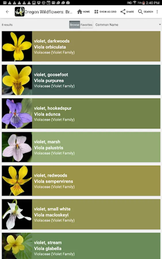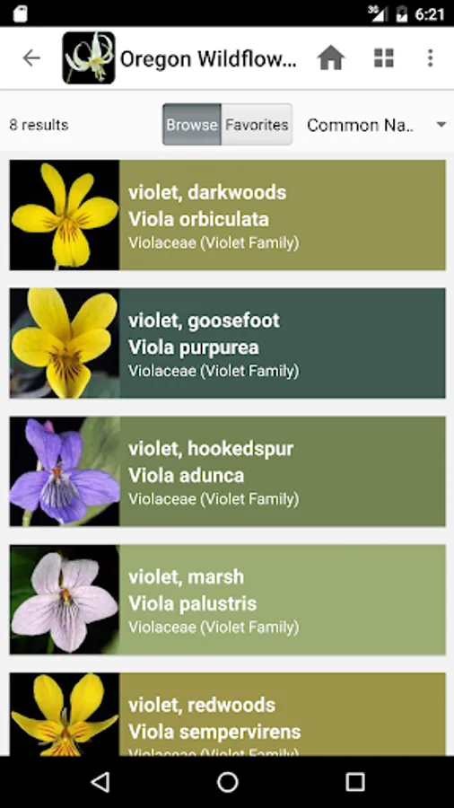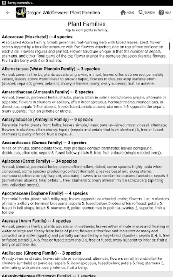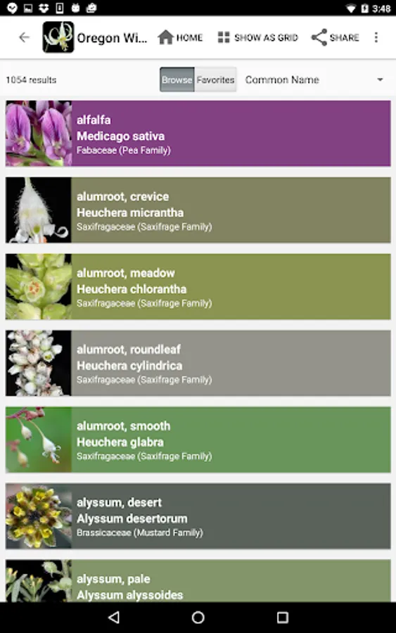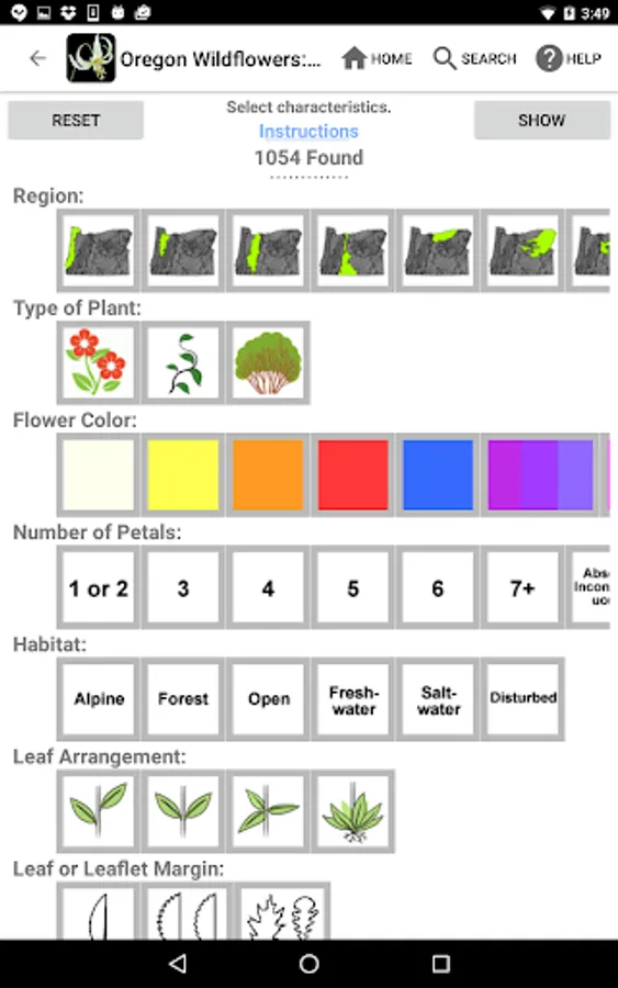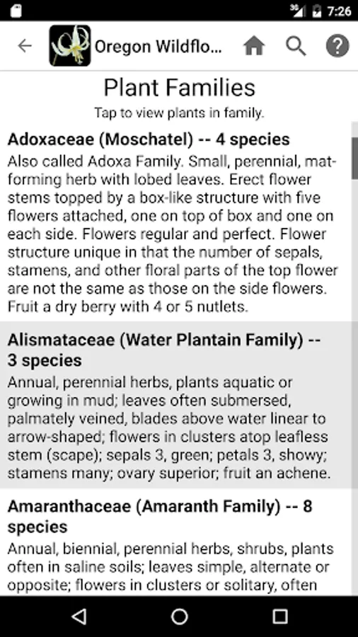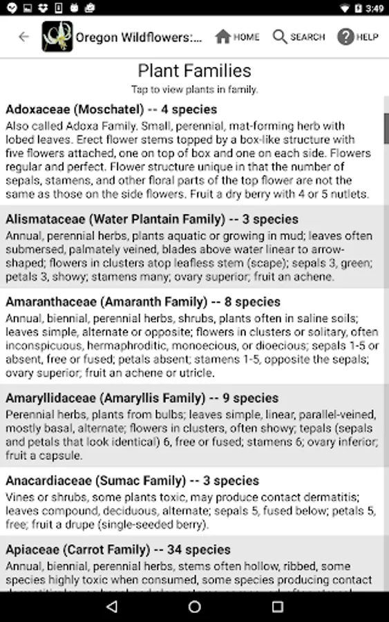 Users can browse through the stunning photographs of plants organized by common name, scientific name, or by family to select a plant and access the related information. However, most users will likely use the identification key that is the core of the app to identify an unknown plant of interest.
