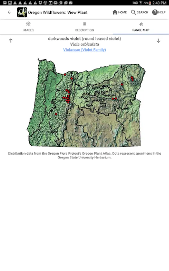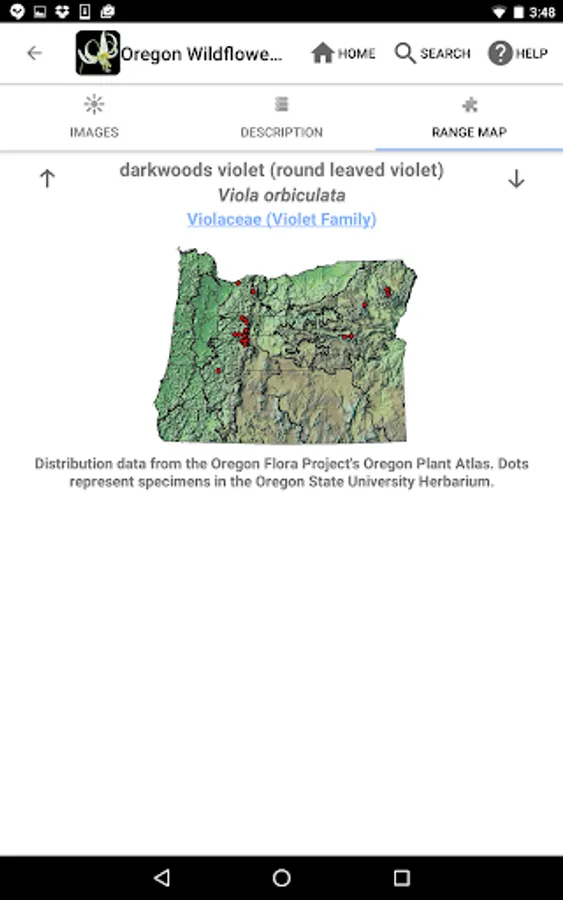 OregonFlora at Oregon State University presents the Oregon Wildflowers plant identification app for smart phones and tablets. The app provides photographs, range maps, bloom period, and detailed descriptions for more than 1280 common wildflowers, shrubs, and vines that occur throughout Oregon and adjacent areas of California, Washington and Idaho. The selection and use of this curated data, developed by botanists, provides users with the most accurate information available that will in turn allow them to readily identify the plants they see statewide.