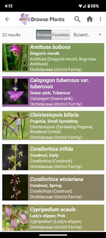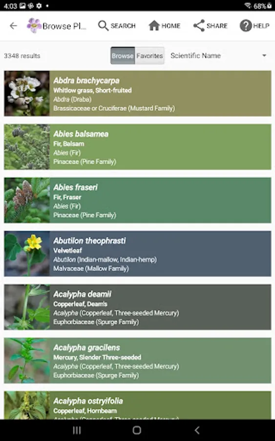 - Ability to arrange plants by scientific name, common name, genus name, or family name.