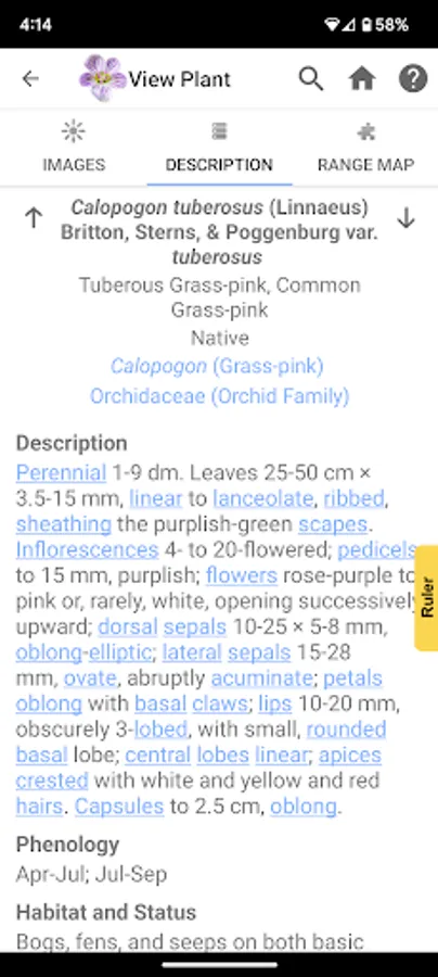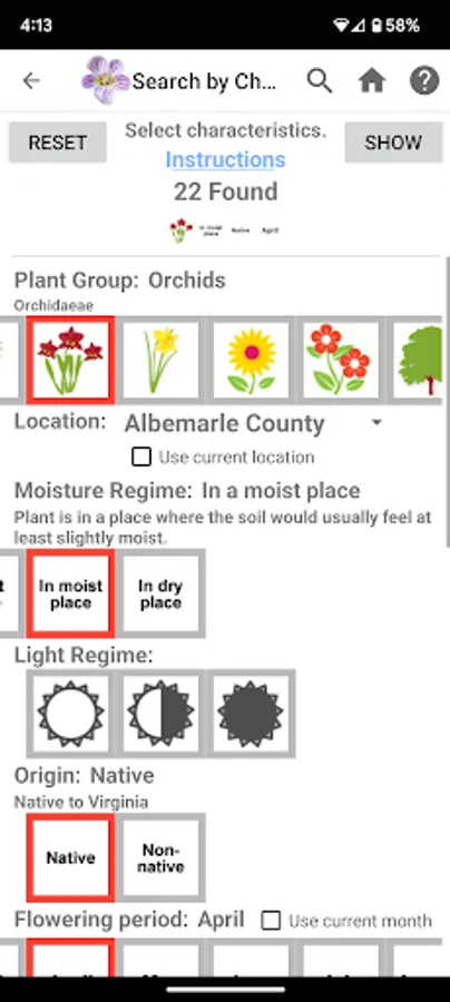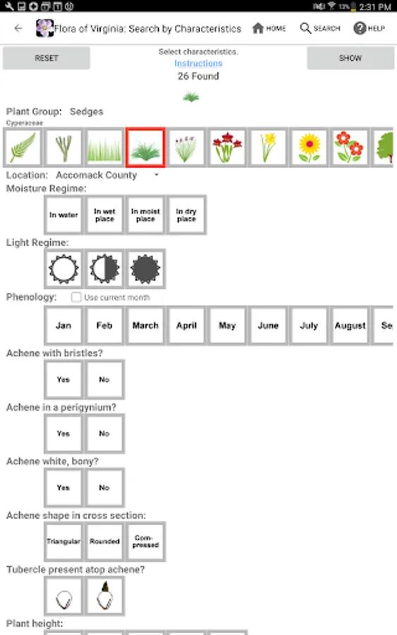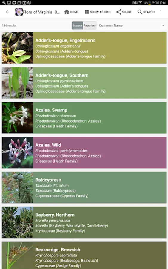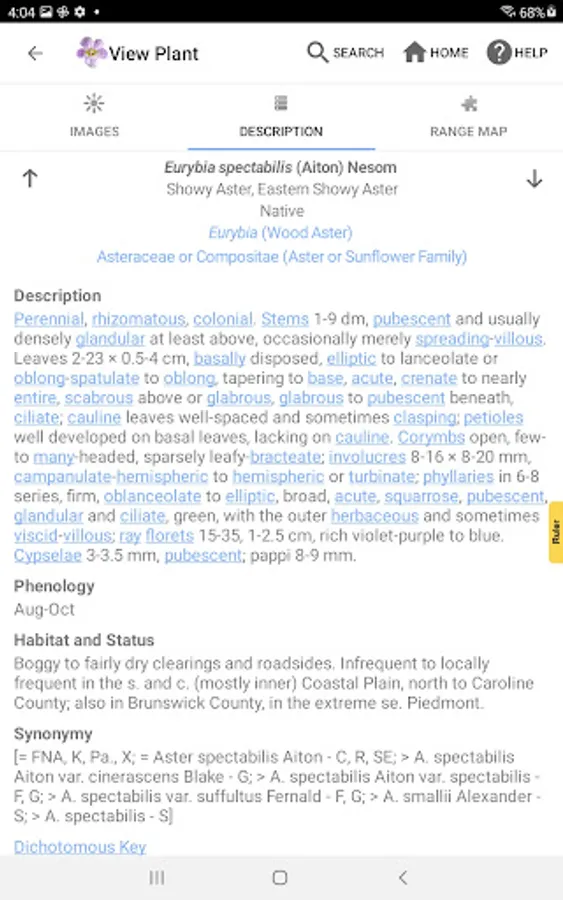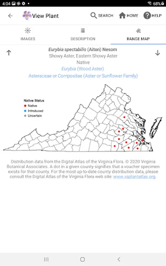 The FLORA OF VIRGINIA APP combines information from several other ecological data sets with the FLORA’s own data, including moisture regime, light regime, level of invasiveness, state and global rareness rankings, and listings as rare or endangered. Emphasis is on habitats, ecological earmarks of natives. The data is presented in 2 ways – Full Dichotomous Keys and a simple to use Graphic Key.