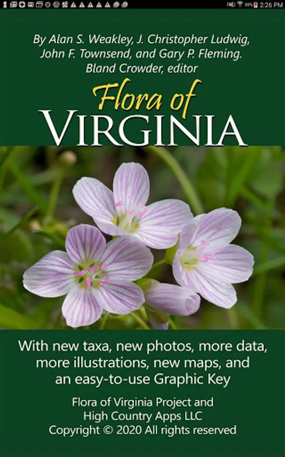 The FLORA OF VIRGINIA APP leverages all of the data found in FLORA OF VIRGINIA, originally published in 2012 by the FLORA OF VIRGINIA PROJECT in partnership with Virginia Department of Conservation and Recreation, Virginia Native Plant Society, Virginia Academy of Science, Virginia Botanical Associates and Lewis Ginter Botanical Garden.