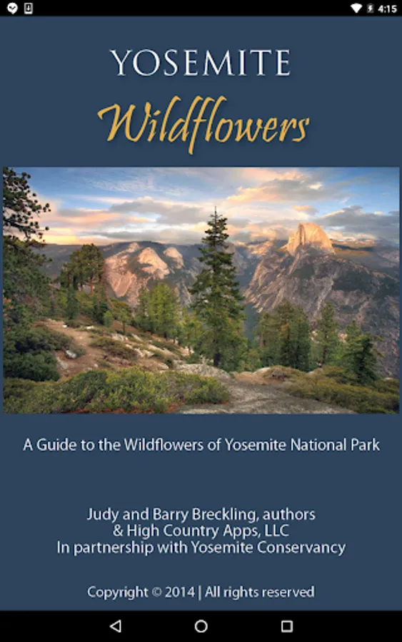 Authors Barry and Judy Breckling and High Country Apps have partnered to produce YOSEMITE WILDFLOWERS, a plant identification field guide for mobile devices. A portion of all proceeds go to support Yosemite Conservancy.