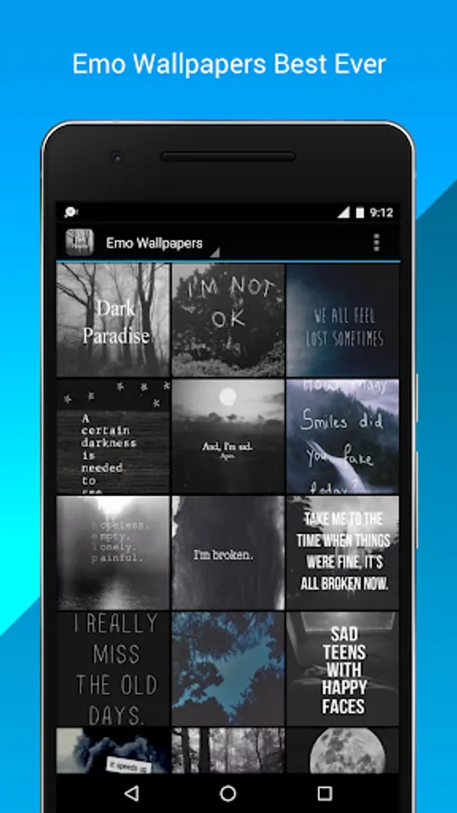 The wallpapers in this app won't try in vain to cheer you up or make you just like everyone else. The somber black and white pictures and words in these apps reflect the pain and loneliness of human existence.