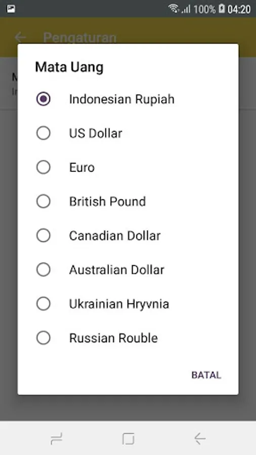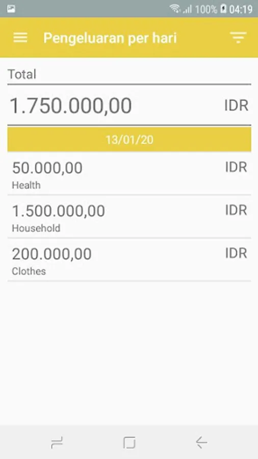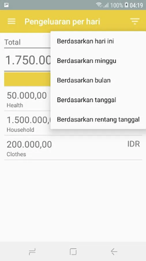 eMoy is an application that is used to facilitate the recording of daily expenses. In this application there are features that can be entered category options that can also add categories according to the desired or in accordance with the category of expenses made. There are regulatory features needed to adjust the currency you want to use. In this application can display expense reports that contain the amount and detail of expenses based on today, by week, by month, by, date, and by the desired date range.
