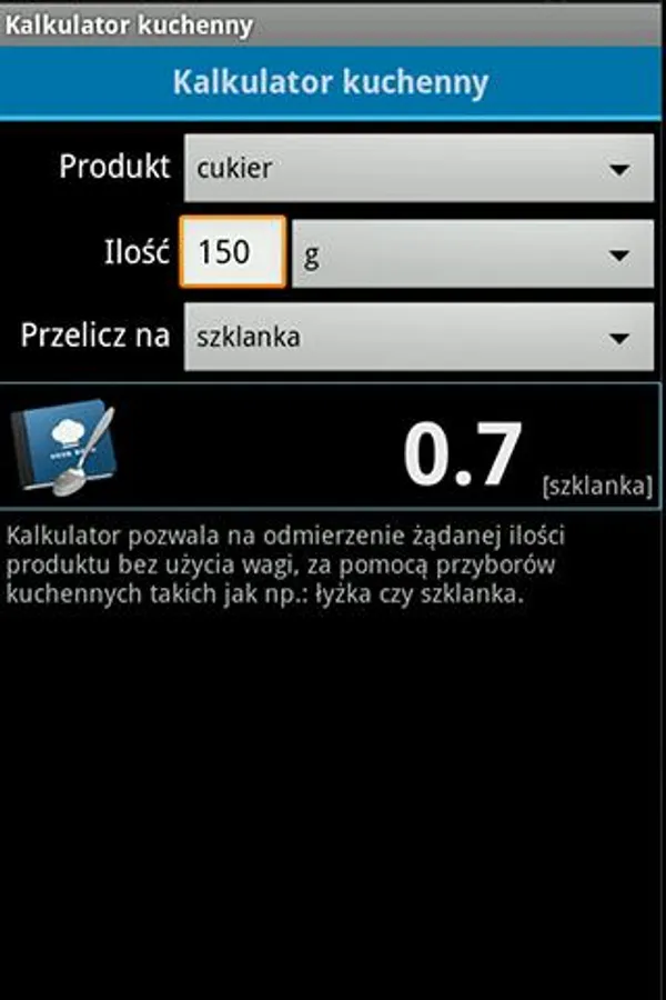 Apron calculator allows measurement of the desired amount of product without the use of gravity, by means of kitchen utensils such as a bucket or cup.