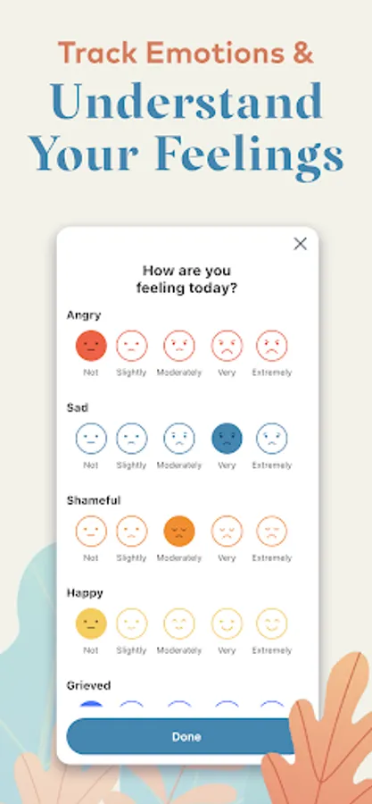 Not sure where to start? Pick from the emotion wheel and explore new ways to process and understand that emotion more deeply. Every emotion you select takes you through a series of guided sessions, written, delivered and approved by experienced mental health care professionals.
